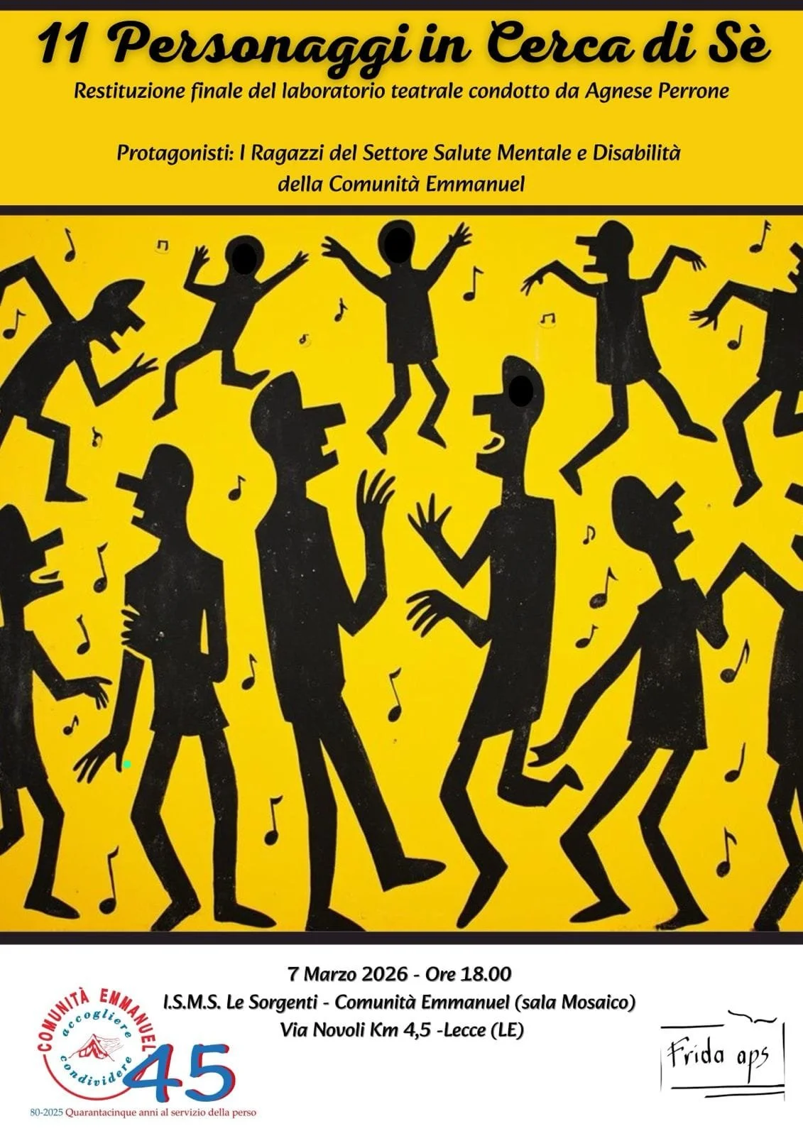 Il 7 marzo, il Settore Salute Mentale e Disabilità della Comunità Emmanuel presenta lo spettacolo teatrale “11 personaggi in cerca di sé”, nato all’interno del laboratorio teatrale e realizzato con l’attenzione, la sceneggiatura e la cura di Agnese Perrone.